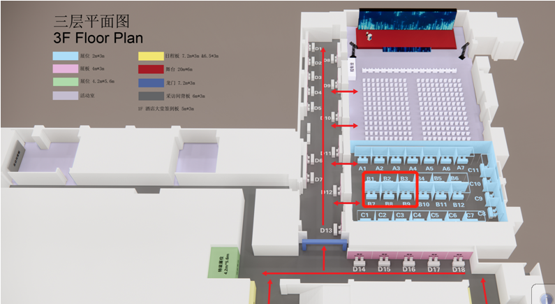 展位面积:36平米,详情见展位图B1、B2、B3、B7、B8、B9。